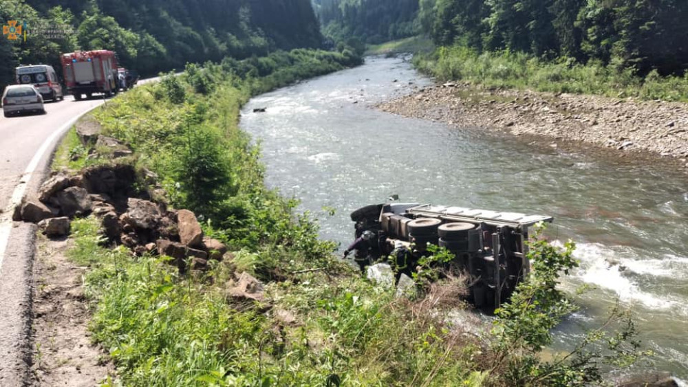 8 липня о 13:27 до Служби порятунку надійшло повідомлення про те, що між містом Яремче та селом Микуличин вантажний автомобіль з'їхав у річку Прут.