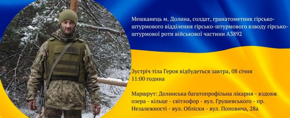 Зустріч тіла Героя відбудеться завтра, 08 січня об 11:00 годині.