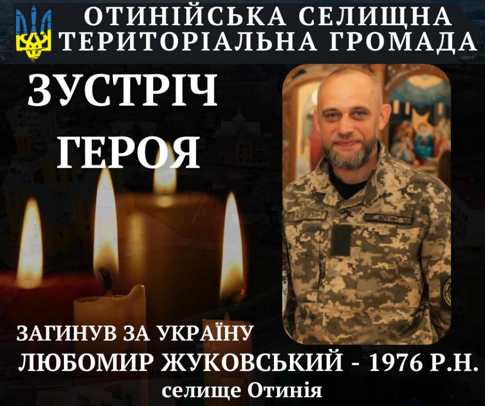 У неділю, 5 жовтня, о 12:00 (зі сторони м. Коломия) на центральній площі селища Отинія відбудеться прощання громади із загиблим Захисником України — Любомиром Жуковським.