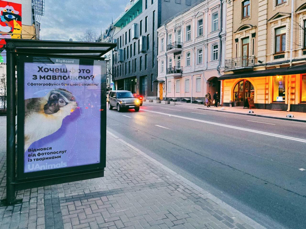 "У новому кампейні ми вирішили допомогти людям, які так хочуть мати на пам’ять фото з тваринкою. Допомогти їм зробити це гуманно, не експлуатуючи живе створіння! Після численних рейдів і спілкування з активістами з різних міст України ми визначили, де саме фотопослуги з тваринами мають найбільший попит. А потім, завдяки підтримці наших патронів і партнерству з компанією bigmedia.ua, встановили сітілайти з тими тваринами, яких там найчастіше експлуатують: від мавп і поні до голубів і змій",- йдеться в повідомленні.