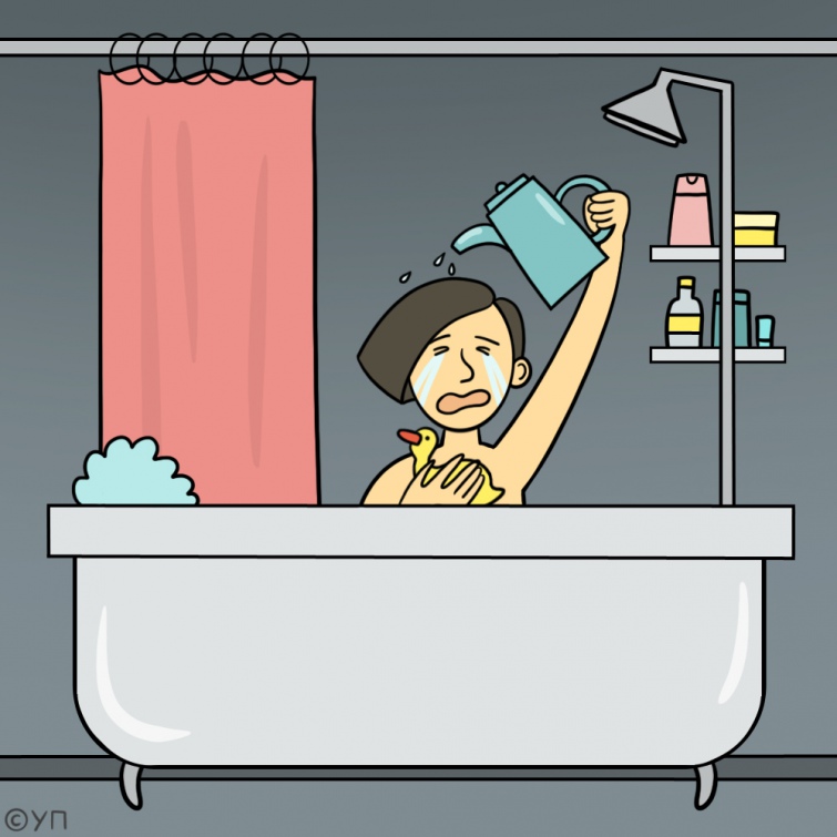 Художниця Женя Олійник, одна з тих, хто наразі живе без гарячої води, намалювала для "Української правди. Життя" тематичний комікс про 5 стадій прийняття відключення гарячої води: заперечення, гнів, торг, депресія та примирення.