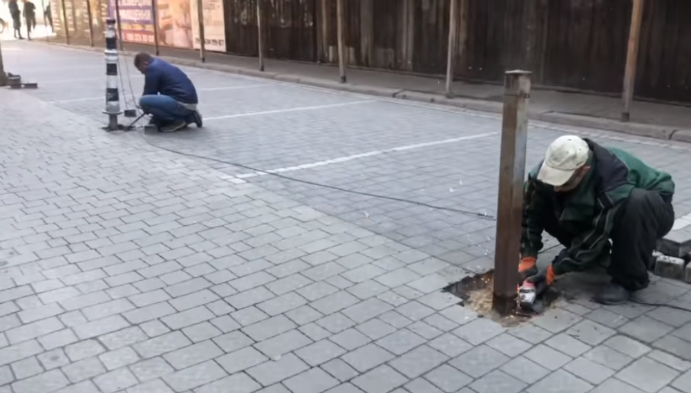 Біля готелю "Дністер" зі скандалом демонтували металеві стовпці