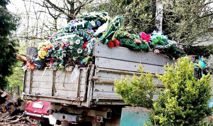 «Якось моя знайома вирішила спалити старі вінки, котрі були на могилі її батьків. Не встигла вона піднести запалений сірник, як квіти миттєво спалахнули. Але вона наразилася на гнів працівника кладовища, котрий нагадав їй про шкідливі викиди у повітря», – розповідає одна жінка, купуючи саджанці квітів на міському ринку.
