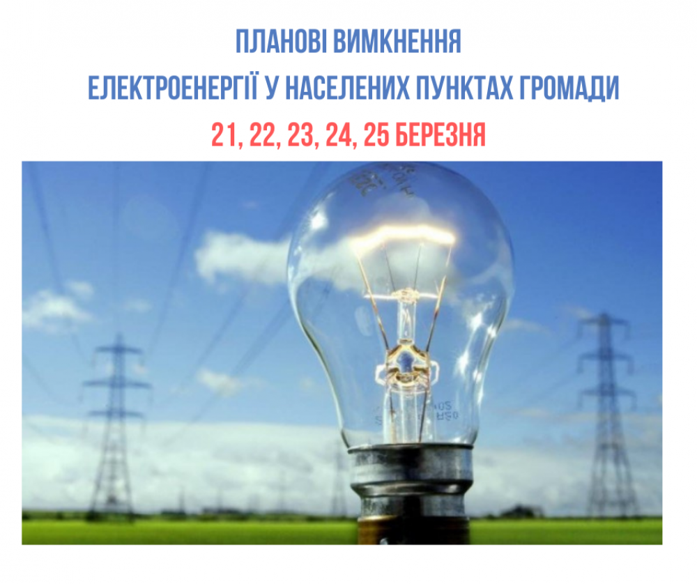 Також 23 березня з 08:00 по 17:00 світло вимикатимуть: