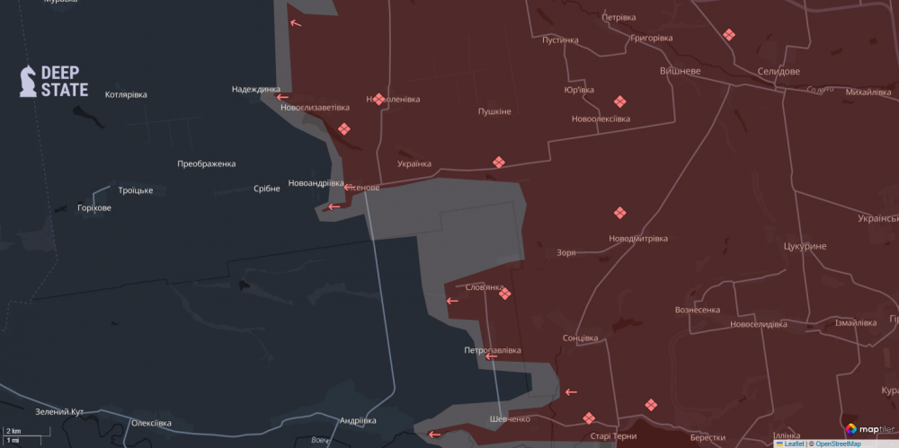 Росіяни окупували Піщане на південний захід від Покровська, Слов'янку і Ясенове. Також зафіксовано просування росіян біля Новоандріївки, Дачного, Котлиного, Звєрєвого, у Времівці та Часового Яра.