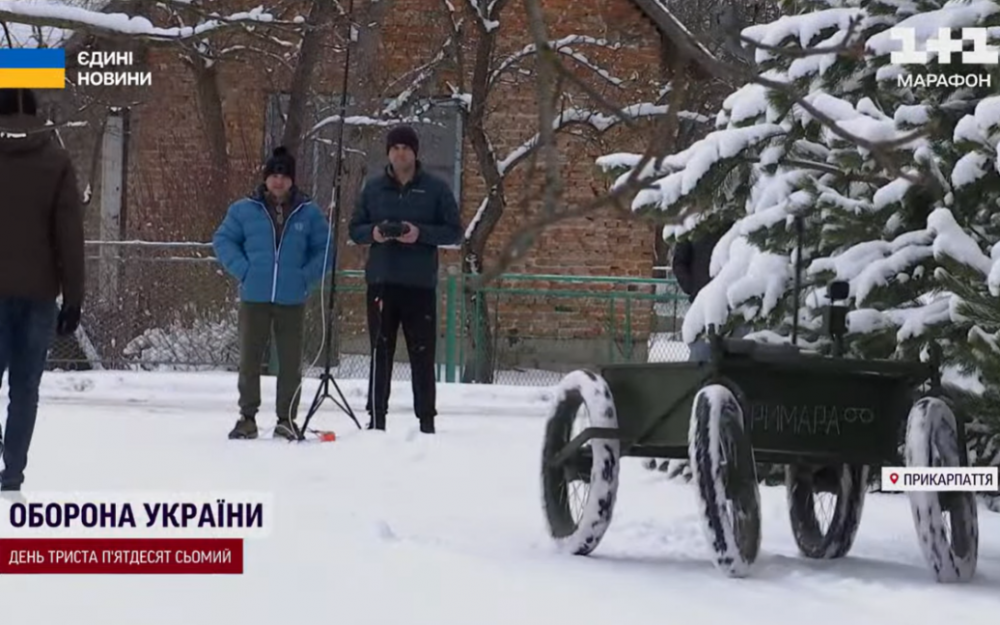 Велодрон "від кумів" - так назвали свій винахід двоє волонтерів із селища Брошнів-Осада на Прикарпатті. Прилад керується дистанційно, оснащений відеокамерою. Фронтовим бездоріжжям може рухатися зі швидкістю до 20-ти кілометрів за годину та перевозити до 200 кілограмів вантажу. Ідея приладу виникла у військових, щоби менше тягати на собі вантажі, йдеться ТСН.