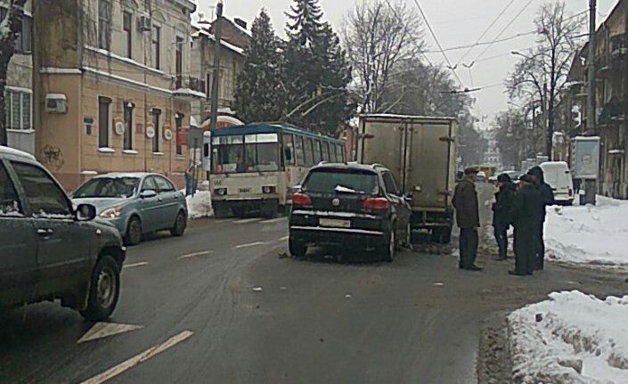 Як зазначається, на перехресті вулиць Лепкого та Павлика кросовер врізався в вантажівку, що притормозила на пішохідному переході.