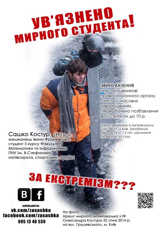 У п'ятницю, 14 лютого, о 9:00 годині іванофранківці пікетуватимуть Апеляційний суд Києва, щоб підтримати Олександра Костура, якого побив і затримав "Беркут" на Грушевського.