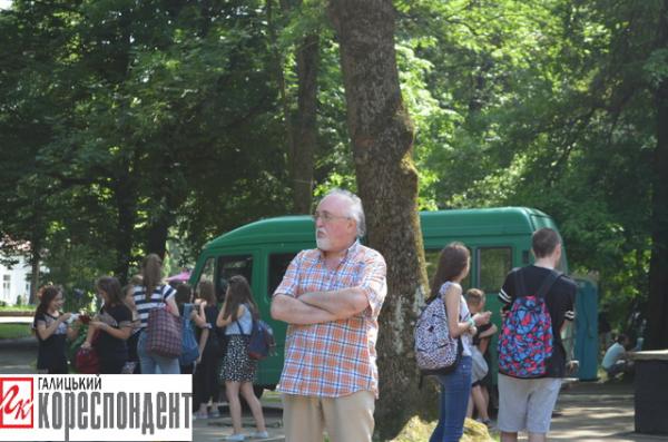 Письменник Винничук незадоволено похитував головою та згодом організатори повідомили, що через відсутність людей творчий вечір Юрія Винничука переноситься на 20.00 год в паб "Biblioteka".