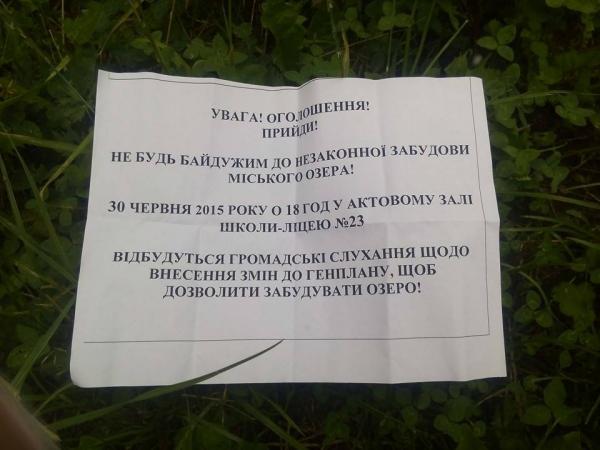 Противники забудови земель біля міського озера закликають іванофранківців не бути байдужими та приєднуватись до них.