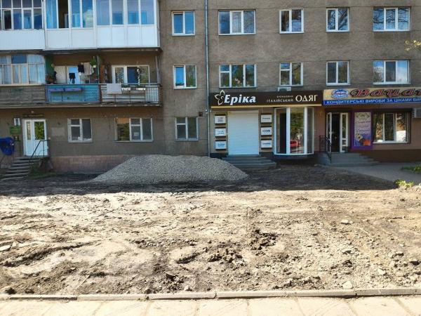 На Галицькій, 91 замість газону тепер гола земля. Обурений мешканець Івано-Франківська виклав в мережу фото того, що залишилось від газону.