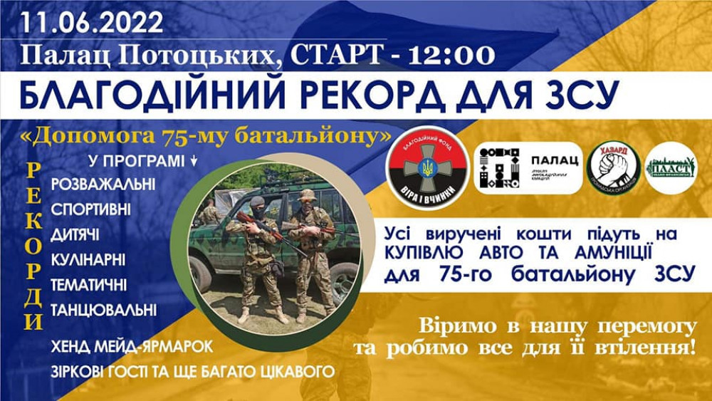 11 червня в Палаці Потоцьких «Простір Інноваційних Креацій «Палац» відбудеться захід "Благодійний рекорд для ЗСУ".