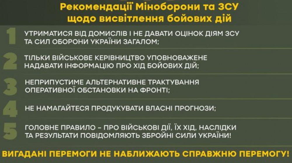 Також Генштаб наголошує на "неприпустимості подвійного трактування стратегічної та оперативної обстановки, що склалася на фронті російсько-української війни, жонглюванні військовою термінологією, намаганнях продукувати власні, нічим не обґрунтовані прогнози".