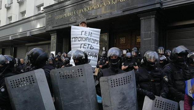 Під час акції протесту між Національною гвардією та протестувальниками стались сутички, людей, які прийшли під ГПУ просто почали поливати водою з приміщення прокуратури. За попередніми даними, серед протестувальників постраждало кілька людей. У поліції поспішили заявити, що у них теж є потерпілі.