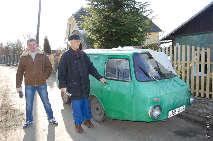 Олег і Владислав Корсуні. Автомобіль «Мрія», який пан Олег зробив ще у 1978 році, їздить і досі. Сконструював він його спеціально під свою родину