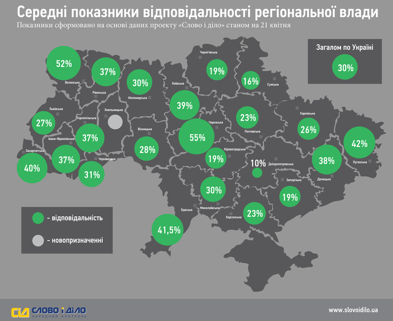 Система народного контролю «Слово і Діло» проаналізувала рівень відповідальності градоначальників обласних центрів і голів обласних адміністрацій та вивела їх середній показник у регіоні.