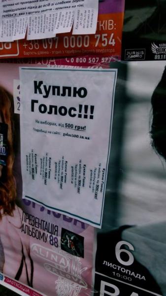 На вулицях Івано-Франківська невідомі розклеїли імпровізовані оголошення з пропозицією продати голос на виборах.