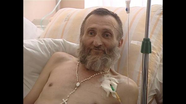 «Пройшов медкомісію. Штамп: «придатний» і «виїхав на виконання бойових завдань», – жартує хворий солдат. Він схуд, шкіра тонка, попелястого кольору, може сказати лише кілька слів, далі задихається, але оптимізм та бойовий дух Євгена не полишають. Попри хворобу та вік, очі чоловіка вражають своєю проникністю, в них – незламна жага до життя.