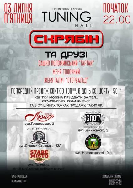 Гітарист Олексій Зволинський назвав такий формат «Скрябін і друзі». Саме у такому складі, а також за участю лідера гурту «Тартак» Сашка Положинського «Скрябін і друзі» запрошує іванофранківців на незабутній вечір музичних спогадів про легенду української сцени.