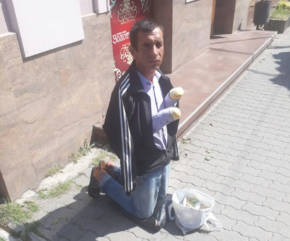 Чоловік із перебинтованими руками, що просив гроші на початку стометрівки привернув увагу небайдужих.