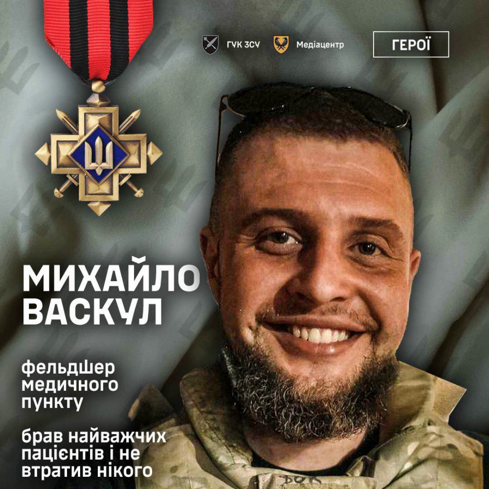 У головному управлінні комунікацій ЗС України про медика одного із підрозділів 102 окремої бригади територіальної оборони Михайла Васкула, який заслужили "Золотий хрест", бо врятував не одне життя.