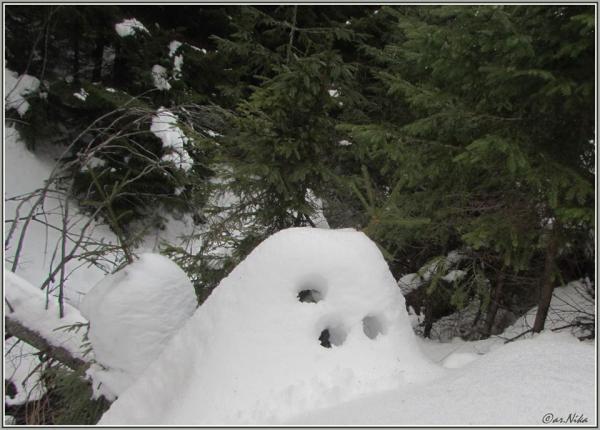 “Про білих привидів карпатського лісу”. Насправді, тема снігу вже настільки актуальна, що час щось робити, друзі! Може, час почаклувати-пошаманити? Викликати тих химер-примар , що живуть в карпаських лісах . Ось хоч таких”, – написала Галина Гринечко