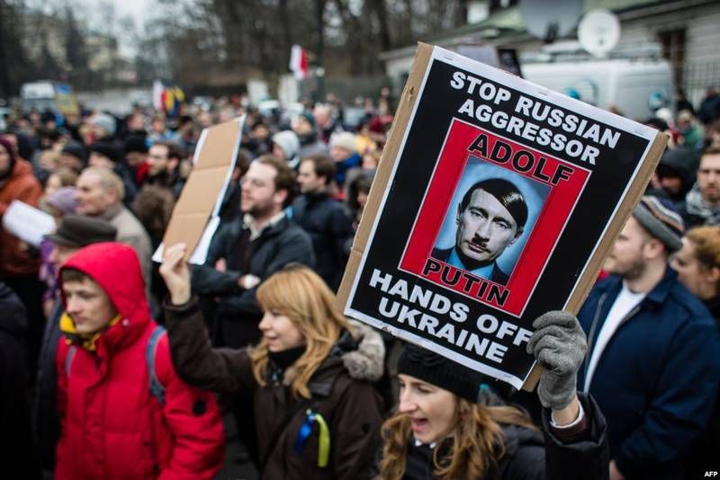 І так ми дійшли до останнього пункту цієї статті — Росії, на яку ображені українці небезпідставно приклеїли свіжий «топонім» — «четвертий райх». Його «фюрер» Путлер (себто Путін), який на анексії Криму цілковито зрівнявся з Гітлером на прикладі анексії Судетів у 1938 році, наочно показав усьому світові, що таке російський фашизм. і ця болячка притаманна не лише керівництву цієї країни — нині три чверті росіян (за винятком невеликої частини дружелюбної до України інтелігенції, яку режим Путіна за це вже починає переслідувати, як це трапилося з музикантом А. Макаревичем із групи «Машина врємєні») підтримують Путіна на випадок війни з Україною. і така дика злоба величезної маси «братів» — простих росіян, які в п’яному і тверезому стані не перестають у той же час базікати, що вони з українцями — «єдиний народ», теж лякає своєю неадекватністю і непередбачуваністю.