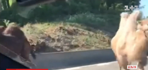 У цей момент старший верблюд потягся до дерева, що росло поруч, і штовхнув незачинені дверцята. Верблюдів на трасі спіймали швидко. Минулося без жертв та травмованих. Відео ТСН.