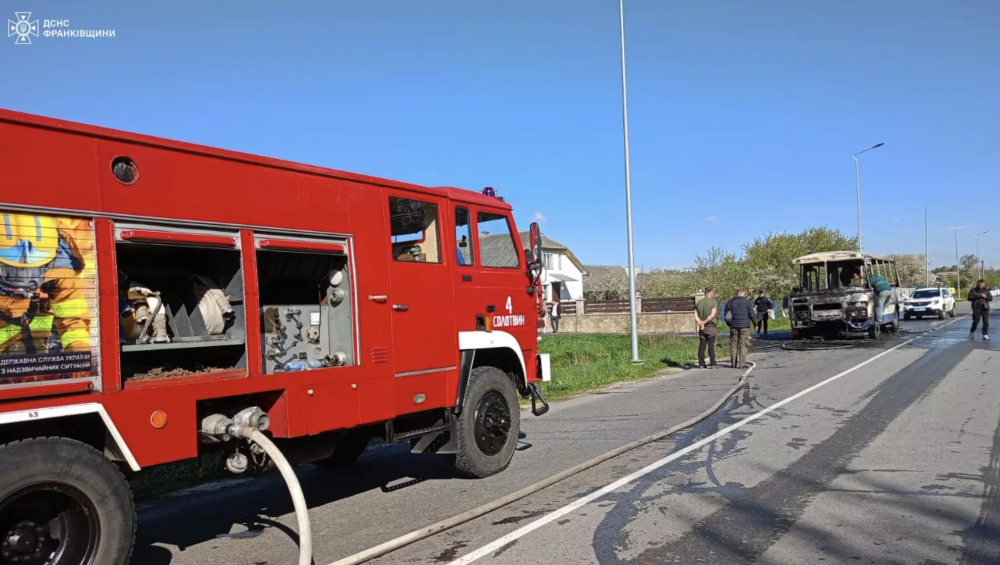 Надзвичайники ліквідували пожежу рейсового пасажирського автобуса в Івано-Франківському районі.