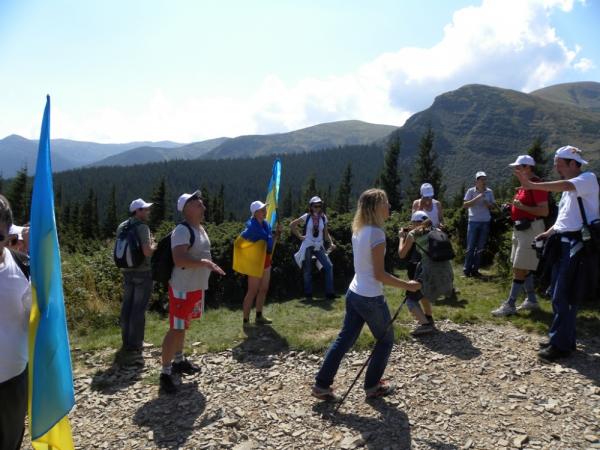 Кілька сотень людей піднялися в суботу на Говерлу з нагоди 25-річчя від дня проголошення Декларації про державний суверенітет України.