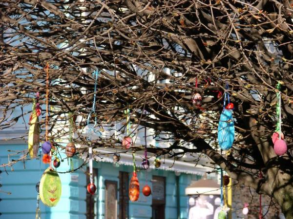 Напередодні Великодня клени на головній вулиці Івано-Франківська прикрасили різнобарвними писанками.