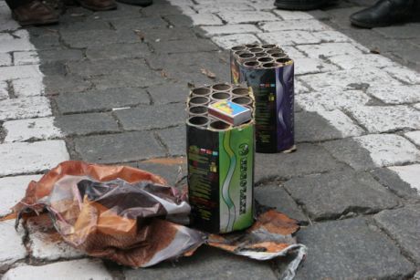 За словами мітингувальників, 2 касети вибухнули, обсипаючи палаючими петардами людей, проте одна не вибухнула.