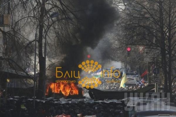 На Інститутській "Беркут" з даху кидає у мітингувальників шифер, все затягнуто чорним димом