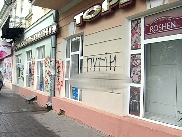 Коломия вкотре відзначилась. Якщо в Києві та Львові на фасадах будівель пишуть вірші відомих поетів, у Чернівцях зображають портрети корифеїв літератури, у Кам'янці-Подільському – репродукції картин відомих художників, то у Коломиї можуть написати на фасадах історичних будівель лише заїжджене гасло про Путіна.
