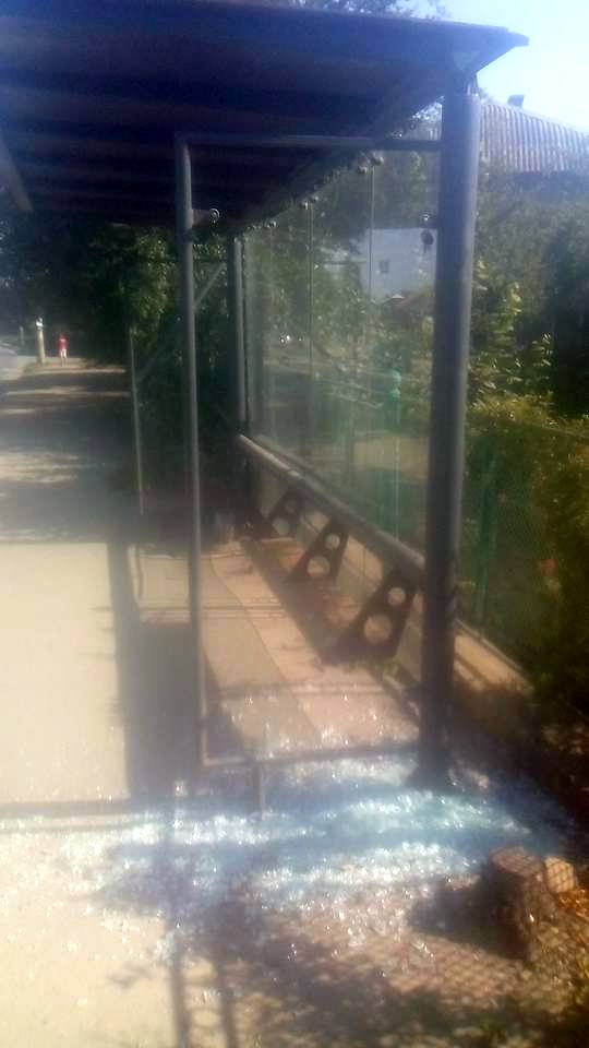 На вулиці Коновальця в Опришівцях невідомі розбили скляну зупинку.