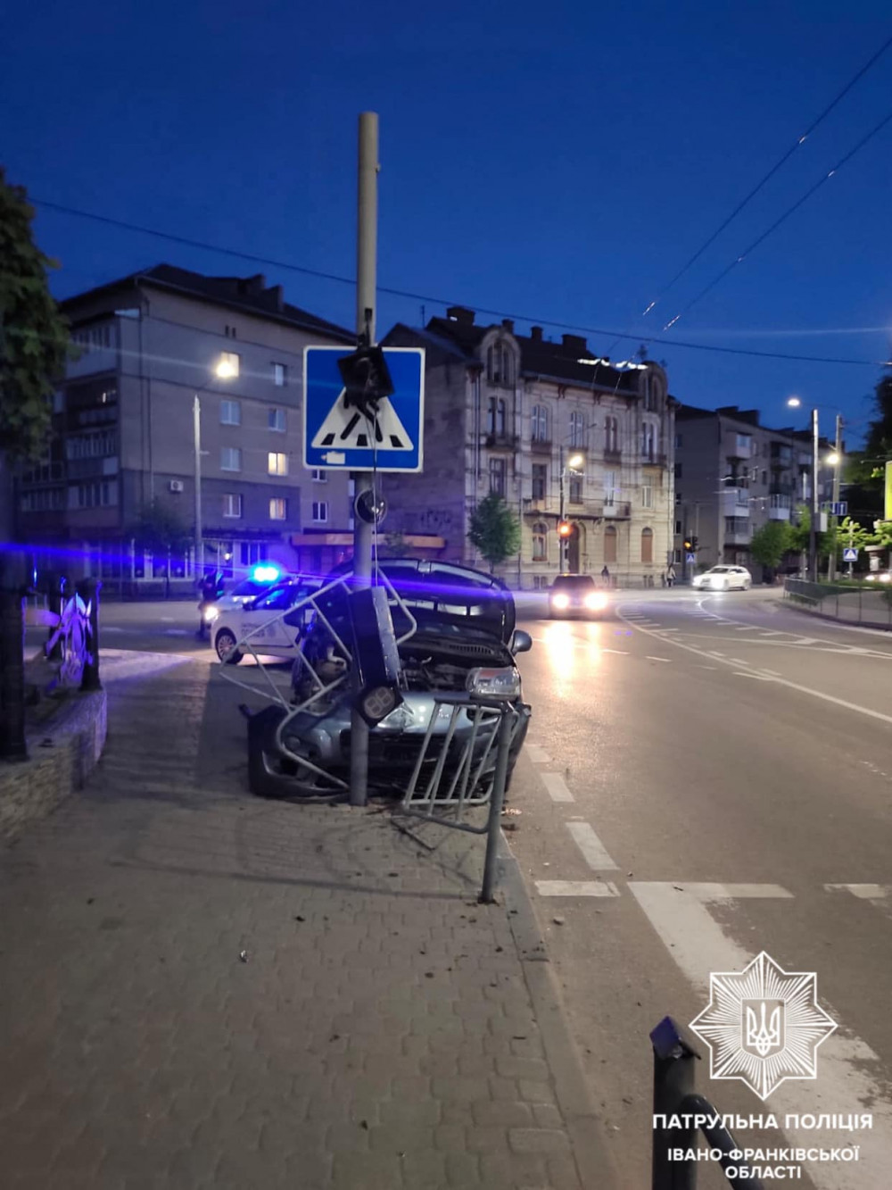 Учора патрульні отримали виклик про ДТП на вулиці Мазепи. Екіпаж, що прибув на місце пригоди встановив: водій автомобіля Citroën не дотримався безпечного швидкісного режиму, не був уважним за кермом та допустив наїзд на світлофор та огорожу.