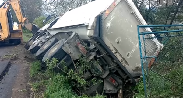 На Надвірнянщині вантажівка злетіла з дороги перекинулась