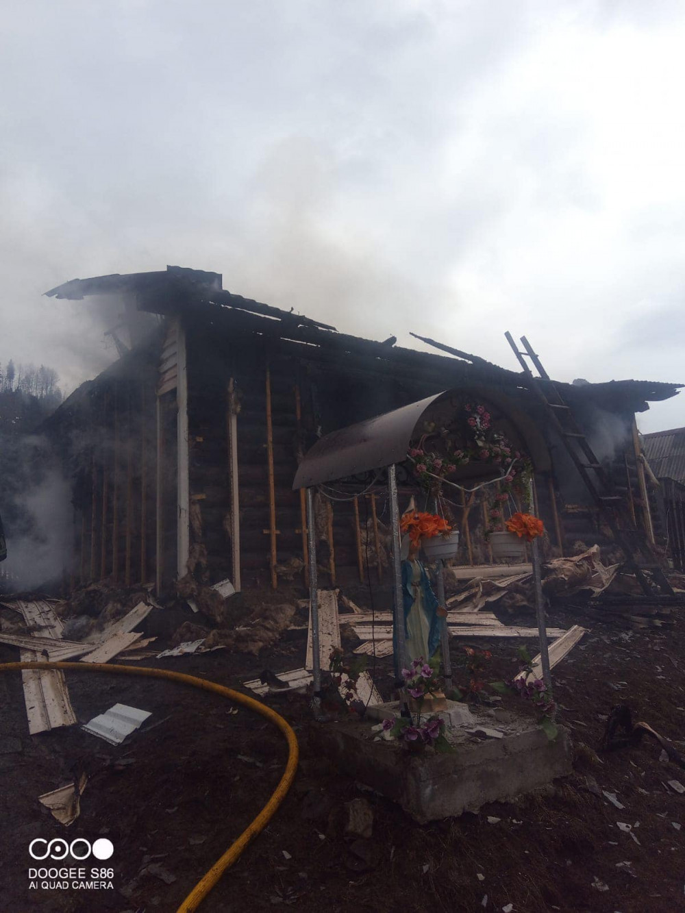 На місці пожежі повністю вціліла капличка зі статуєю Матері Божої.