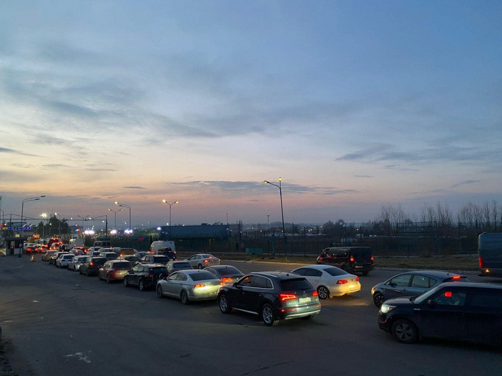 На окремих напрямках польсько-українського кордону 22 квітня утворилися кілометрові черги .