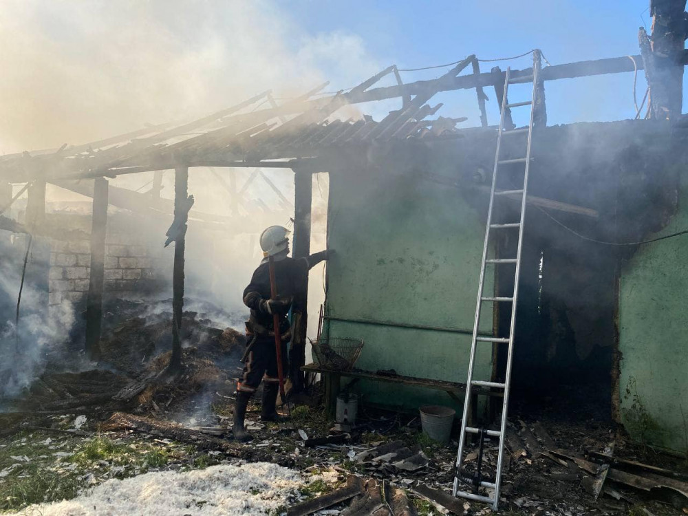 По прибуттю до місця події встановлено, що горить комплекс господарських будівель та споруд (літня кухня, стайня, стодола) на площі 98 м.кв.