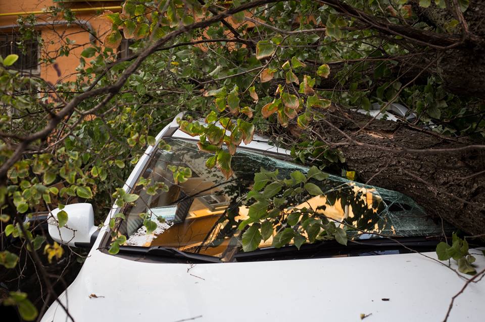 На Прикарпатті дерево впало на автомобіль, що їхав по дорозі
