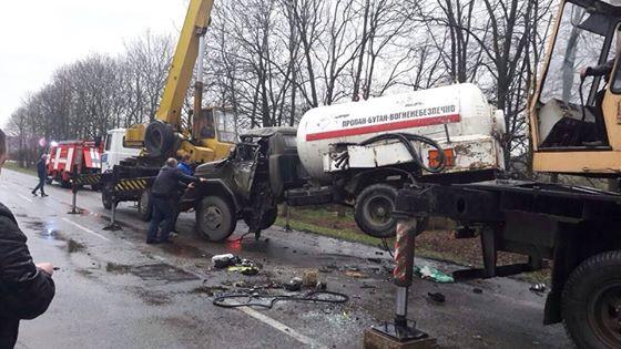 Автомобіль рухався з цистерною для перевезення 6м.куб. газу"метан-бутан". Про це повідомляє управління ДСНС в області.