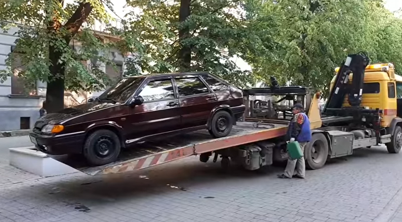 Сьогодні, 10 травня на вулиці Шевченка патрульна поліція евакуювала авто припарковане на в'їзді у двір будинку. Відео виклав у мережі Фейсбук франківець Богдан Досюк.