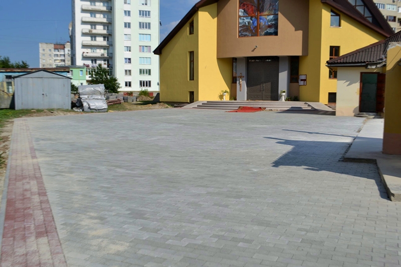 Навколо церкви св. апостола Юди Тадея, яку будували протягом 8 років у мікрорайоні Каскад, закінчують роботи з вимощення нового покриття.