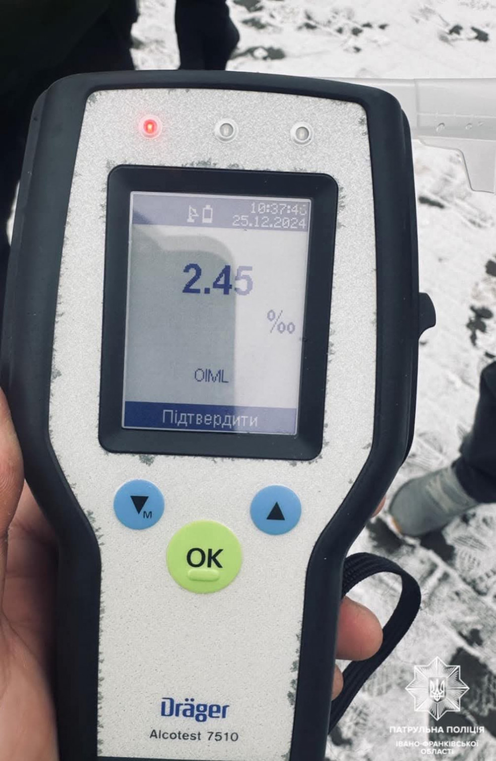Під час перевірки документів патрульні виявили у 40-річного водія ознаки алкогольного сп'яніння. Чоловік пройшов освідування на місці.