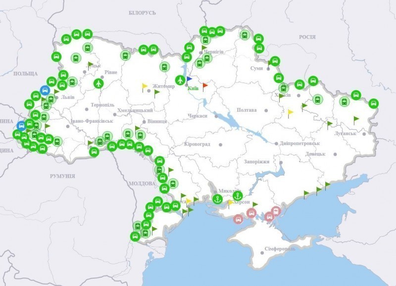 Державна прикордонна служба України показала на інтерактивній мапі рівень завантаженості на кордонах.