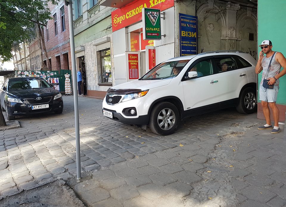 "Нарешті компетентна інстанція зрозуміла серйозність ситуації і встановила знак заборони проїзду через перекошену та просілу арку. під якою розташовані підвальні приміщення з мурованими цегляними склепіннями..І хоча у двір цього будинку є інший заїзд. з боку вул.Шевченка, через вказаний арочний проїзд (аварійність якого офіційно підтверджена експертами) і надалі заїзджають автівки, джипи та буси, навмисно ігноруючи знак. Деякі з водіїв, що на фото, на зауваження відкрито хамили та навіть погрожували фізичною розправою!", написала Svitlana Pron.