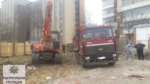 Поки патрульні перевіряли документи, будівельники встигли вирити котлован. Після перевірки будівельники його самі засипали землею.