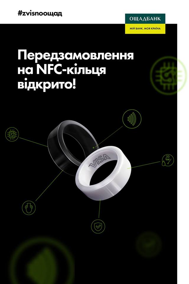 Державний Ощадбанк запустив продаж перснів з вбудованим NFC модулем, який дозволяє здійснювати безконтактну оплату покупок у магазинах.