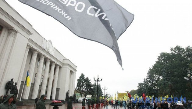 Акція проходить під Радою з середи, 6 вересня. Тут також залишається сцена, встановлена раніше мітингувальниками.